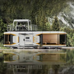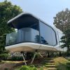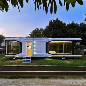 - Built with durability and safety in mind, the E5 Space Capsule House features a galvanized steel frame system, ensuring superior strength and resistance to environmental elements. The fluorocarbon sprayed aluminum alloy shell enhances the exterior’s durability while maintaining a sleek, modern aesthetic.
